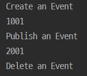 @Component public class AppRunner implements ApplicationRunner { @Autowired EventService eventService; //interface type이 정의되어 있는 경우는 interface type으로 주입 받는 것을 습관하 하는 것이 좋습니다. @Override public void run(ApplicationArguments args) throws Exception { eventService.createEvent(); eventService.publishEvent(); eventService.deleteEvent(); } }code를 실행하면 다음과 같이 createEvent(), publishEvent() method의 실행 시간이 함께 출력 됩니다.