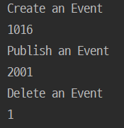 @Component public class AppRunner implements ApplicationRunner { @Autowired EventService eventService; //interface type이 정의되어 있는 경우는 interface type으로 주입 받는 것을 습관하 하는 것이 좋습니다. @Override public void run(ApplicationArguments args) throws Exception { eventService.createEvent(); eventService.publishEvent(); eventService.deleteEvent(); } }code를 실행하면 다음과 같이 createEvent(), publishEvent() method의 실행 시간이 함께 출력 됩니다.