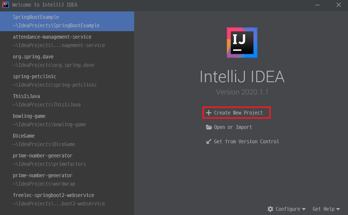 + Create New Project를 클릭하여 Project 생성을 진행합니다.