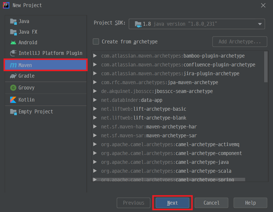 Maven을 선택하시고 다른 설정 없이 Next를 클릭합니다.