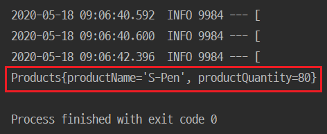 @SpringBootApplication public class Application { public static void main(String[] args) { SpringApplication app = new SpringApplication(Application.class); app.setWebApplicationType(WebApplicationType.NONE); app.run(args); } /* @Bean public Products product() { Products products = new Products(); products.setProductName("S-Pen"); products.setProductQuantity(80); return products; } */ }Project B의 어느 곳에도 bean을 등록하는 code가 없지만 Project A의 auto configure에서 Project B의 application.properties 내용을 기준으로 bean을 등록한 것을 볼 수 있습니다.
