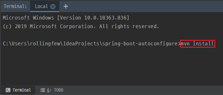 auto configure class의 내용이 수정되면 maven install을 진행합니다.