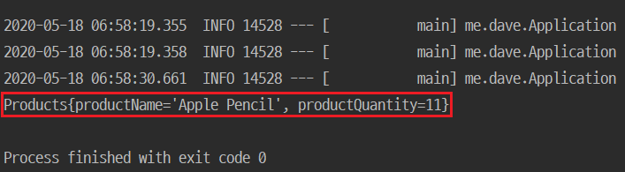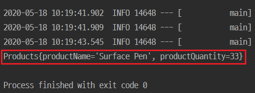@SpringBootApplication public class Application { public static void main(String[] args) { SpringApplication app = new SpringApplication(Application.class); app.setWebApplicationType(WebApplicationType.NONE); app.run(args); } /* @Bean public Products product() { Products products = new Products(); products.setProductName("S-Pen"); products.setProductQuantity(80); return products; } */ }Project B의 어느 곳에도 bean을 등록하는 code가 없지만 Project A의 auto configure에서 Project B의 application.properties 내용을 기준으로 bean을 등록한 것을 볼 수 있습니다.
