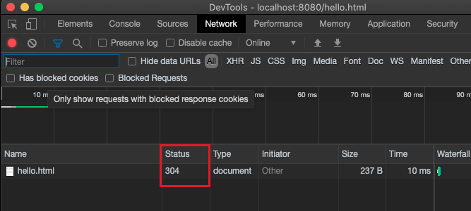 실제로 response 된 내용을 browser에서 정상적으로 확인해보기 위해 application을 실행한 상태로 http://localhost:8080/hello.html
