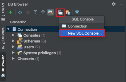 open SQL Console button을 click후 New SQL Console... 을 선택합니다.